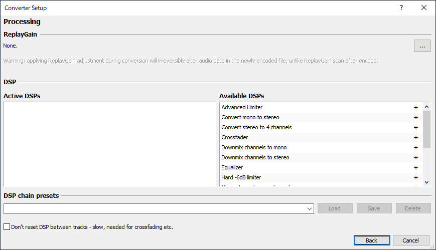Processingはあらかじめ、音楽ファイルにReplayGainやDSPなどの処理を加えることが可能です。