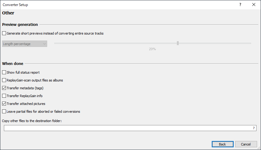 ファイルからファイルにConvertする際にtagなどのmetadataをどのように扱うかを設定する項目があります。